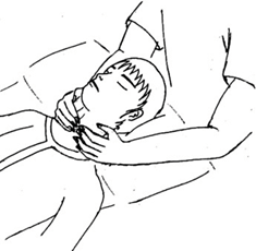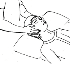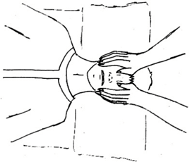 2ª Manos por encima de las orejas. No cubrir las orejas, puede molestar al paciente. |