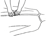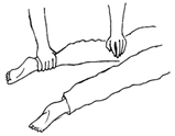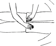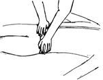 10ª Piernas: en la zona de los muslos un minuto en cada muslo. Una mano en cada rodilla y tobillo durante 2 o 3 minutos. |