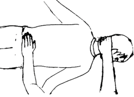4ª Las manos en la parte delantera de la garganta. Las manos quedan apoyadas sobre las clavículas |