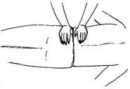 8ª Manos en el intestino en la línea de la cintura. |